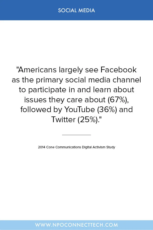 But here’s the thing. Your nonprofit organization does not need to be on all of them. It doesn’t even need to be on ten of them. In fact, when your organization is still new to the big, wide world of social media, we encourage you to choose three.